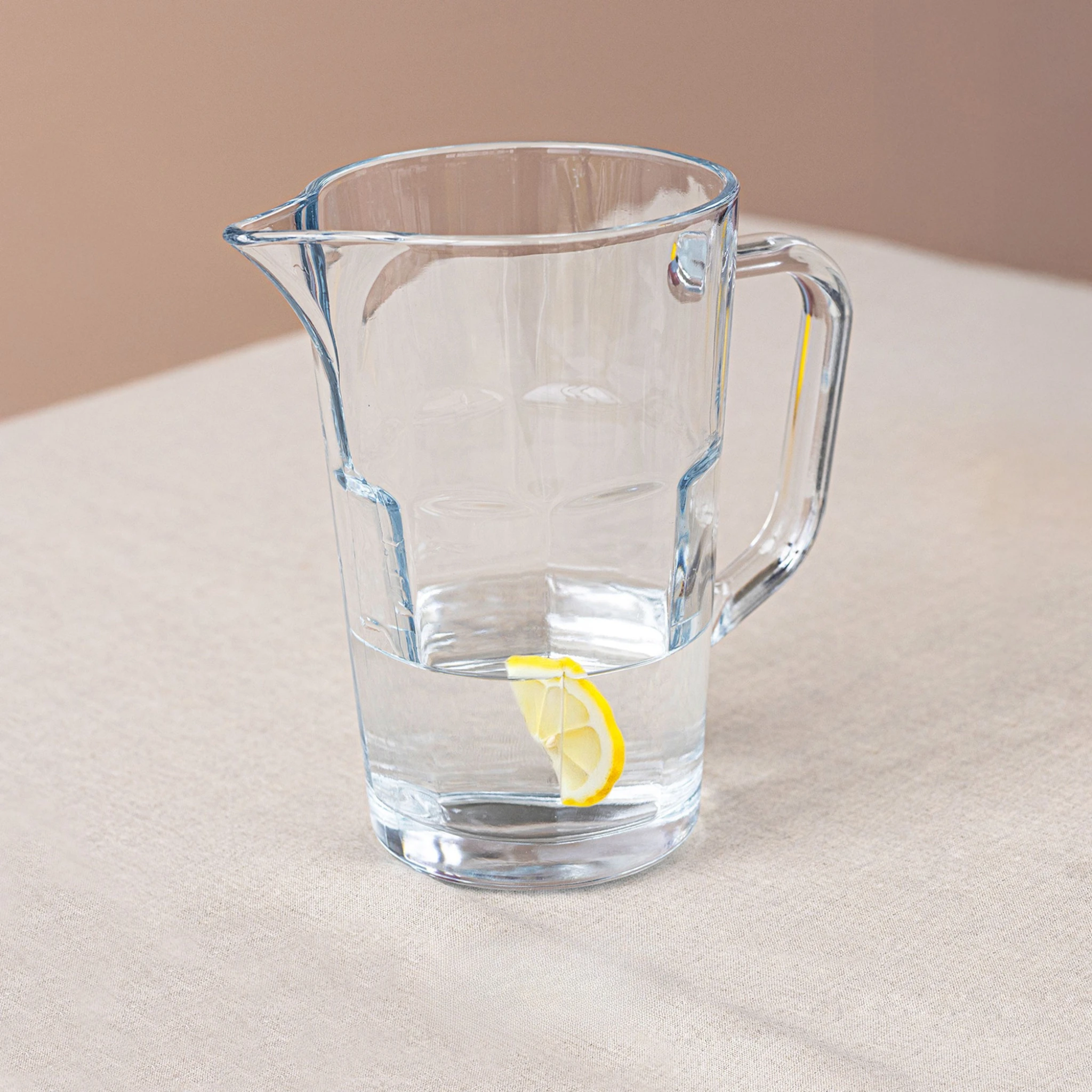Wykonany z grubego, bezołowiowego szkła sodowo-wapniowego, dzbanek łączy estetykę z funkcjonalnością – zachowując trwałość niezbędną przy codziennej eksploatacji. Ergonomiczny uchwyt dobrze leży w dłoni, a profilowany dzióbek umożliwia precyzyjne nalewanie bez kapania.