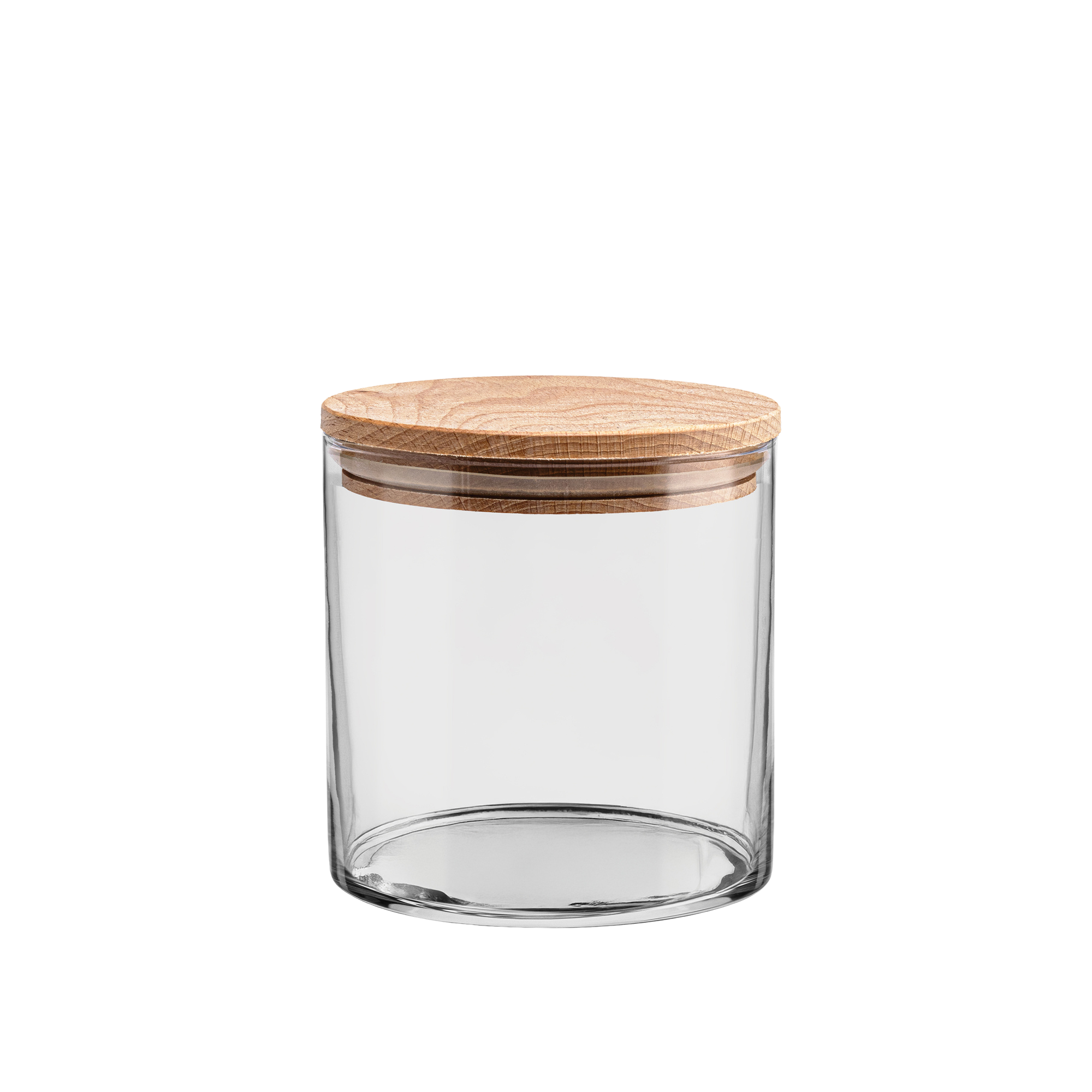 Wykonany z wysokiej jakości przezroczystego szkła, pozwala na atrakcyjną prezentację zawartości, eksponując jej kolor i strukturę. Pokrywka z naturalnego drewna bukowego, wyposażona w silikonową uszczelkę, zapewnia szczelność oraz chroni produkt przed wilgocią, kurzem i utratą aromatu. Połączenie szkła i drewna nadaje pojemnikowi charakter premium, wpisując się w trendy rzemieślnicze, eko i zero waste.