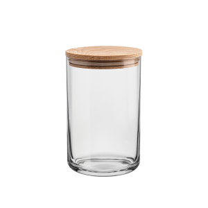 Wykonany z transparentnego szkła, pozwala na atrakcyjną prezentację zawartości, a pokrywka z naturalnego drewna bukowego z silikonową uszczelką chroni produkty przed wilgocią, kurzem i utratą aromatu. Neutralny, cylindryczny kształt ułatwia personalizację – np. poprzez etykiety, nadruk czy znakowanie. Powtarzalność wymiarów, zapewniona przez produkcję maszynową, sprawia, że pojemnik doskonale sprawdza się w kolekcjach produktowych oraz podczas wdrożeń seryjnych.