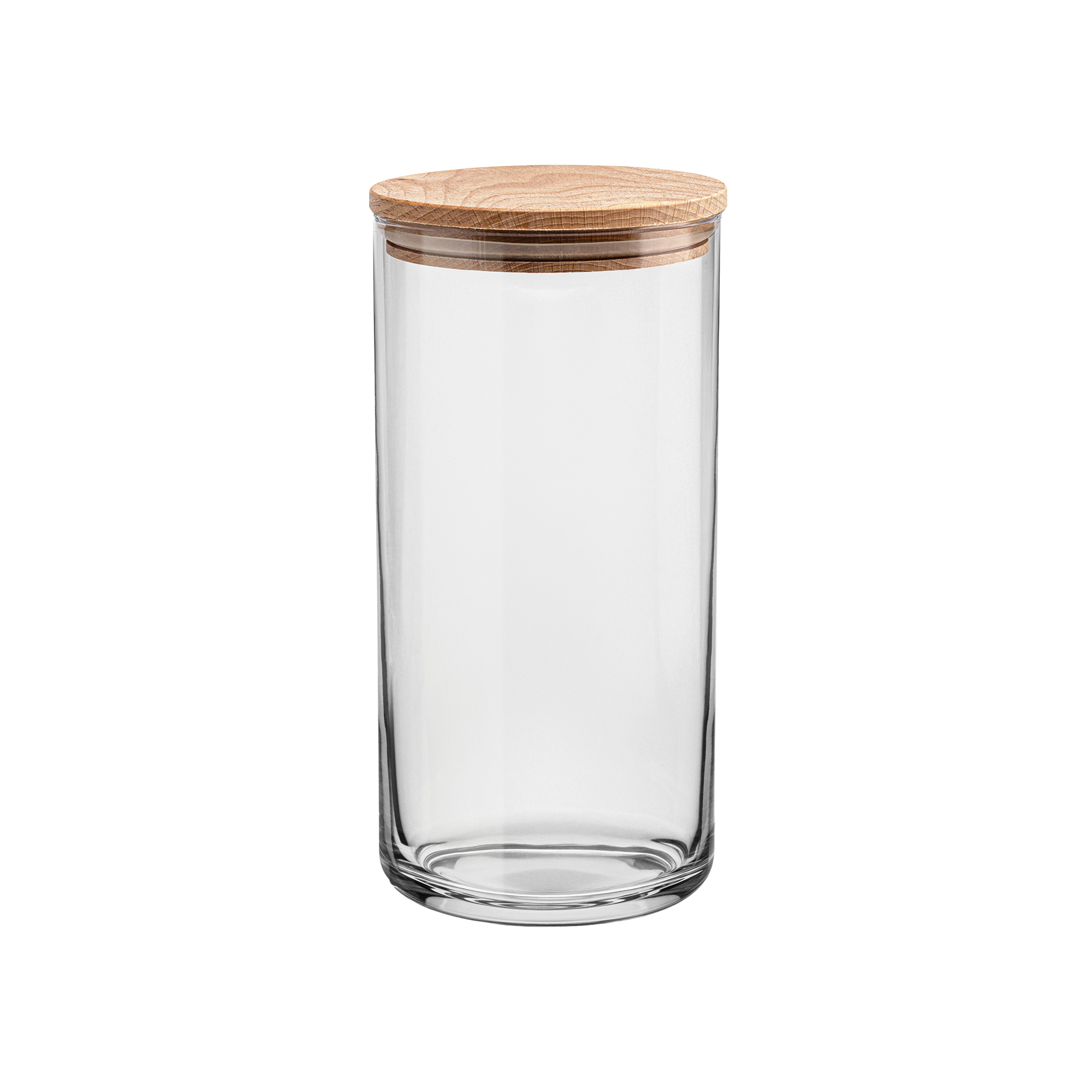 Pojemnik Vero o pojemności 1385 ml to eleganckie i funkcjonalne szkło użytkowe, które łączy minimalistyczny design z praktycznym zastosowaniem. Wykonany z transparentnego szkła, atrakcyjnie eksponuje zawartość, a pokrywka z naturalnego drewna z silikonową uszczelką zapewnia szczelność, chroniąc produkt przed wilgocią i kurzem. Neutralny, cylindryczny kształt sprawia, że pojemnik łatwo wpisuje się w estetykę różnych marek i koncepcji ekspozycyjnych.