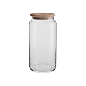 Transparentne szkło atrakcyjnie eksponuje zawartość, a pokrywka z naturalnego drewna z silikonową uszczelką zapewnia szczelność oraz chroni produkty przed wilgocią i kurzem.