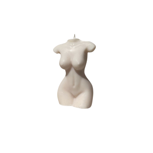 Świeca w kształcie kobiety została ręcznie zrobiona z wosku sojowego oraz naturalnego bawełnianego knota