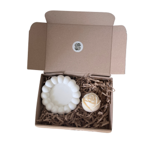 Zestaw ROSY to esencja romantyzmu zamknięta w minimalistycznej formie. Połączenie subtelnej podstawki Peru z świecą sojową w kształcie róży tworzy idealny komplet. To gotowy pomysł na prezent, który wnosi do wnętrza spokój, harmonię i artystyczny detal.