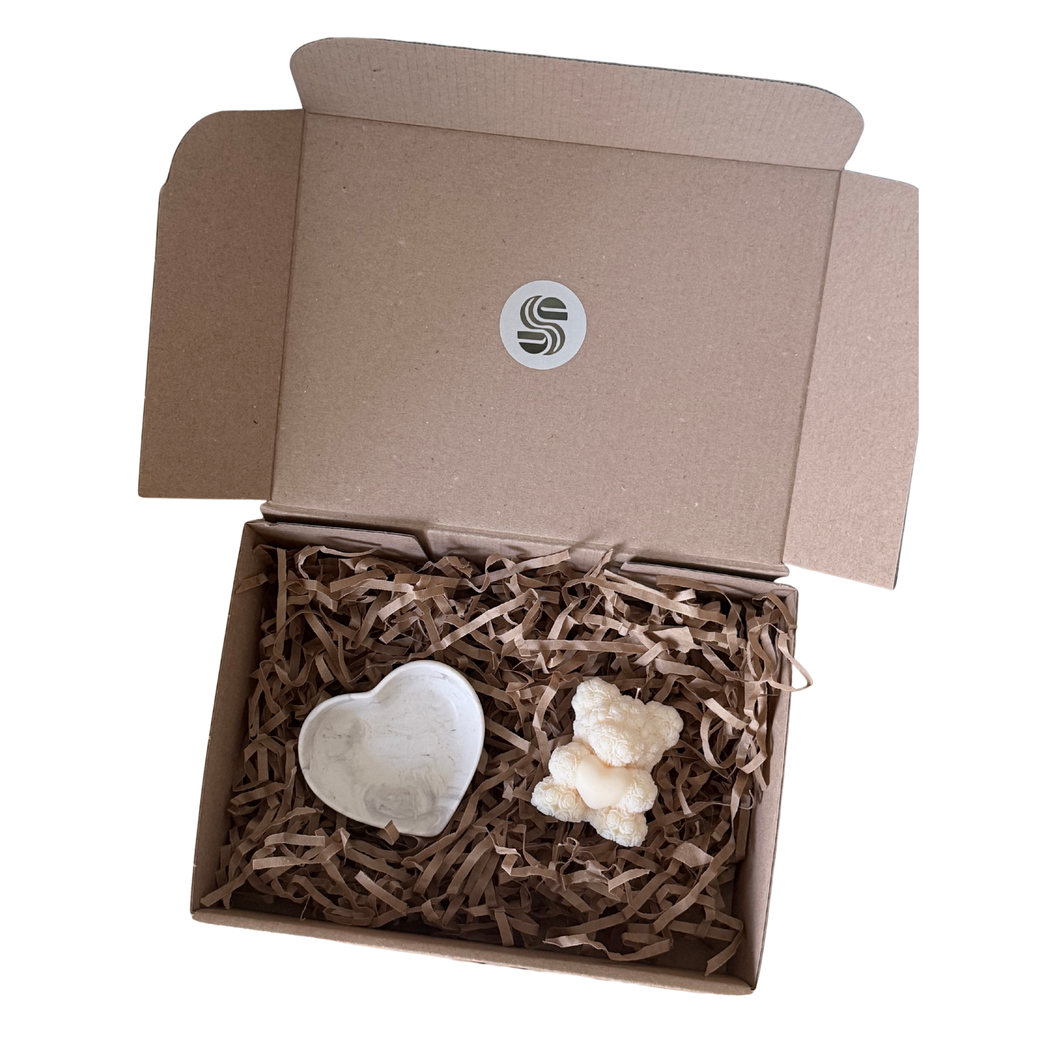 Zestaw TEDDY HEART to esencja romantyzmu zamknięta w minimalistycznej formie. Połączenie subtelnej podstawki w kształcie serca z świecą sojową w kształcie misia z róż tworzy duet idealny. To gotowy pomysł na prezent, który wnosi do wnętrza spokój, harmonię i artystyczny detal.